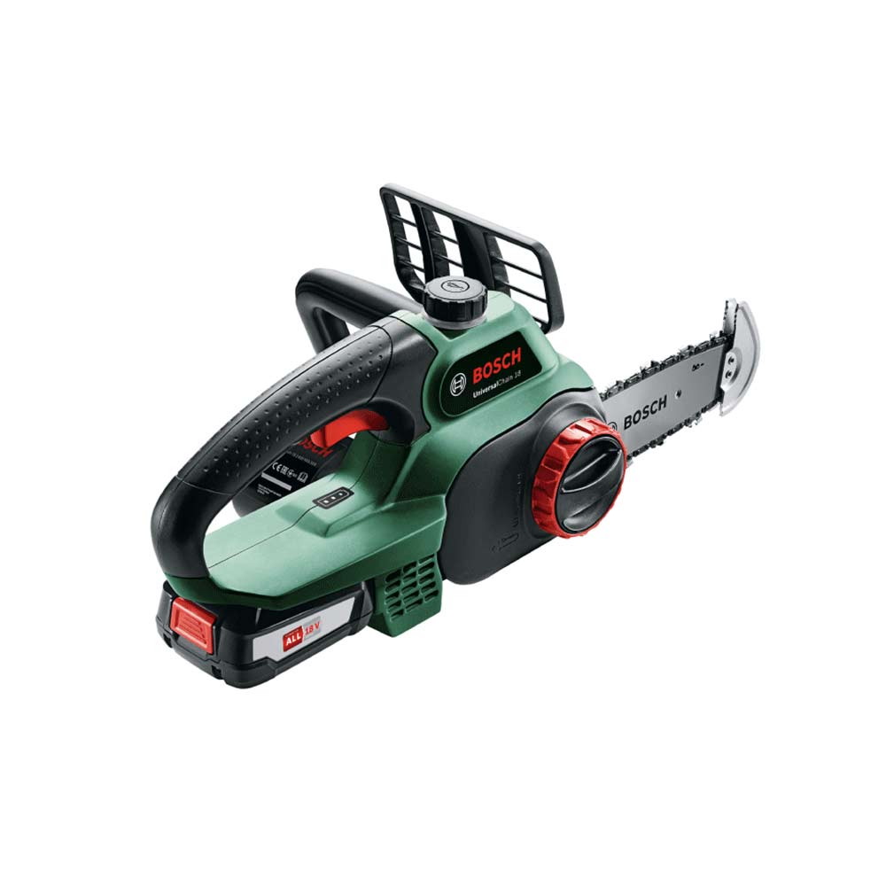 Universal Chain 18 malene je težine, kompaktne konstrukcije i lake pokretljivosti te omogućuje učinkovito orezivanje u različitim položajima uz težinu od samo 3 kg zajedno s akumulatorom. Bosch SDS-sustav omogućuje jednostavno podešavanje bez upotrebe alata. Stabilizirajući štitnik vrha sa zupcima za zahvaćanje čvrsto drži i poboljšava kontrolu prilikom podrezivanja, što rezultira minimalnim oštećenjem grane. Jednostavno prebacivanje između velikog broja različitih zadataka, uključujući lagano orezivanje, usitnjavanje otpada i rezanje ogrjevnog drva.