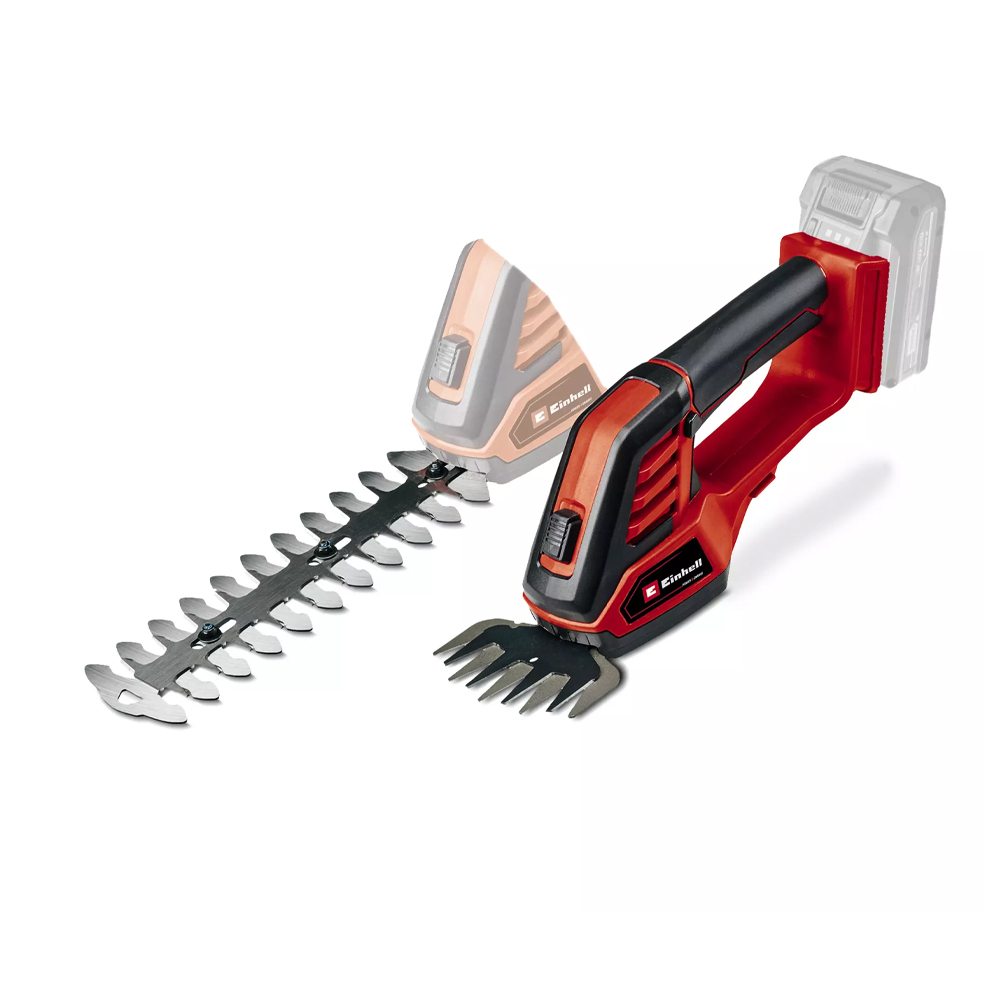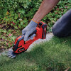 Einhell akumulatorske škare za travu i grmlje GE-CG 18/100 Li-Solo visoko su učinkoviti član fleksibilne Power X-Change obitelji. Aku škare prikladna su alternativa ručnim pilama za rezidbu ili vrtnim škarama. Također su lakše, tiše i svestranije od benzinskih ili verzija na strujni kabel, te su stoga idealna pomoć kada je u pitanju obrezivanje, oblikovanje i prorjeđivanje grmlja i drveća. Oštrica za rezanje trave savršeno je pogodna za rezanje rubova travnjaka (100 mm). Laserski rezane i dijamantom brušene oštrice škara za grmlje idealne su za šišanje živice i grmlja. Alat je lako promijeniti, bez potrebe za bilo kojim drugim alatom. Mekani rukohvat pruža savršeno držanje i ergonomiju za svaki pokret tijekom uporabe. Pokriveno kućište prijenosa pruža zaštitu tijekom uporabe i prilikom čišćenja od dodira s dijelovima koji su podmazani uljem za prijenosnike. Za rad je potrebna jedna 18 V PXC baterija. Baterija i punjač nisu obuhvaćeni ovom isporukom - dostupni su zasebno.