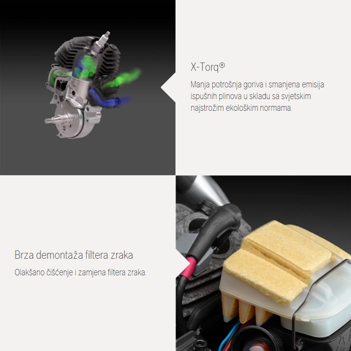 SUPER PRILIKA - Istinska profesionalna motorna pila više srednje klase. proizvedena i dizajnirana za najzahtjevnije poslove. Radilica i kućište motora odoljevaju vrlo teškim uvjetima rada, a rasplinjač ima prigušenje vibracija. Opremljena X-Torq® motorom sa smanjenom potrošnjom goriva i emisijom štetnih plinova. Pila kombinira malu težinu, veliku snagu i rapidna ubrzanja. Pila profesionalnih karakteristika i izgleda, pogodna za amatere i profesionalce.