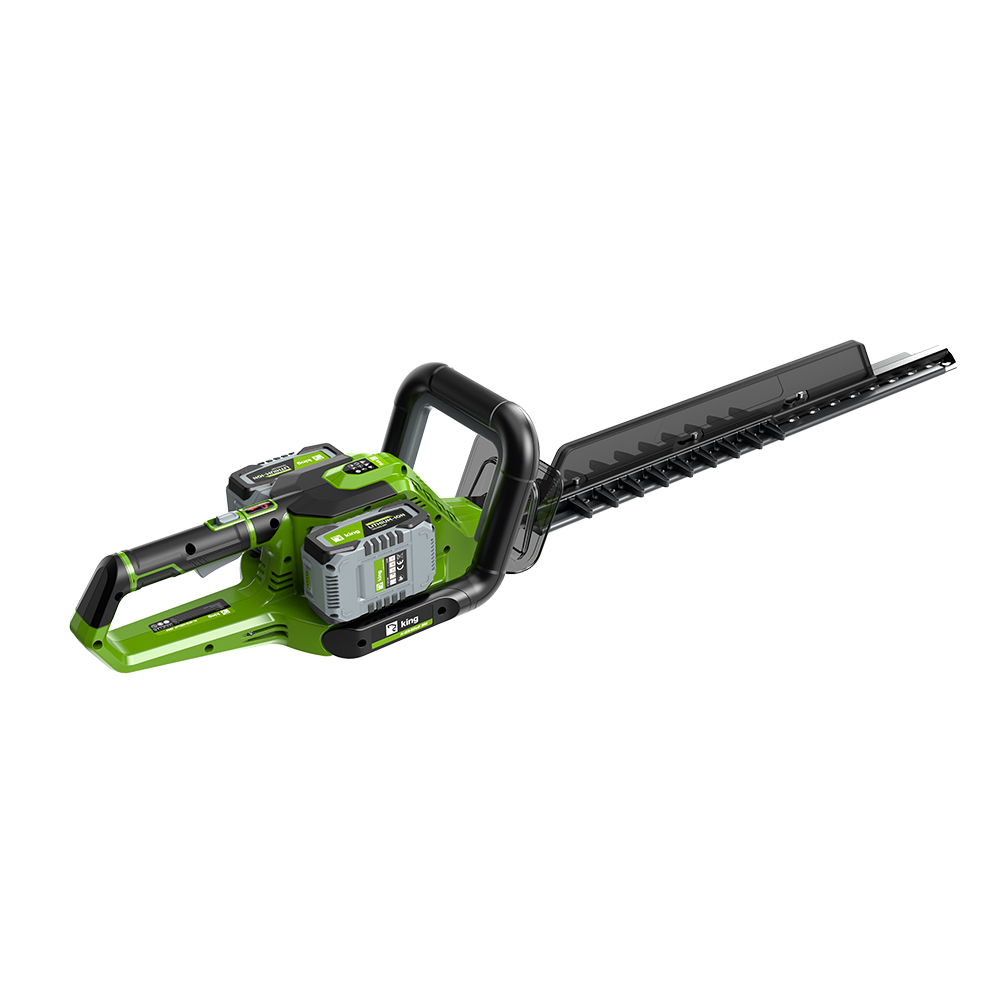KING akumulatorske škare za živicu K-6540x2 BM su, zahvaljujući snažnom 40 V sustavu i dvostrukim baterijama koje osiguravaju dugotrajan rad, idealne za održavanje srednjih i većih živica. Duga 650 mm rezna oštrica i veliki razmak zubaca od 30 mm omogućuju jednostavno rezanje debljih grana, dok 2700 rezova u minuti pruža brze i čiste rezultate.