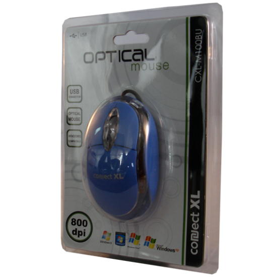 Jednostavan optički žični miš, rezolucije 800dpi, konekcija USB 2.0. Ovaj optički miš dolazi s 3 tipke i scroll kotačićem. Miš za računalo dolazi u plavoj boji, te s kabelom duljine 1,5 metara.
