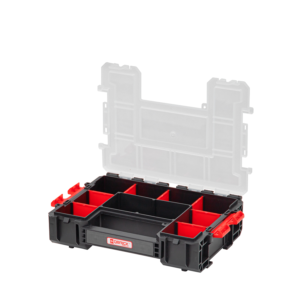 Organizator s podesivim pregradama. Može se kombinirati s drugim organizatorom iste veličine. Izdržljiv proziran poklopac; Čvrste bočne kopče.Ojačana konstrukcija. Rupa za lokot. dimenzije: 300 x 224 x 74 mm