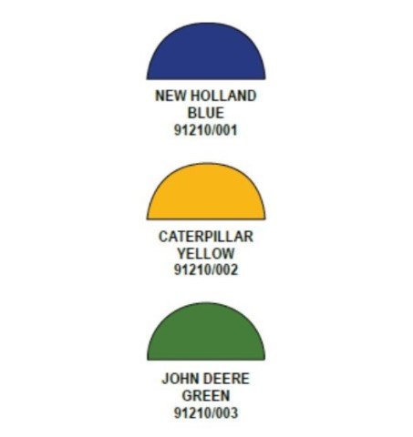 Dostupan u tri boje: new holland plava, caterpillar žuta i john deere zelena.